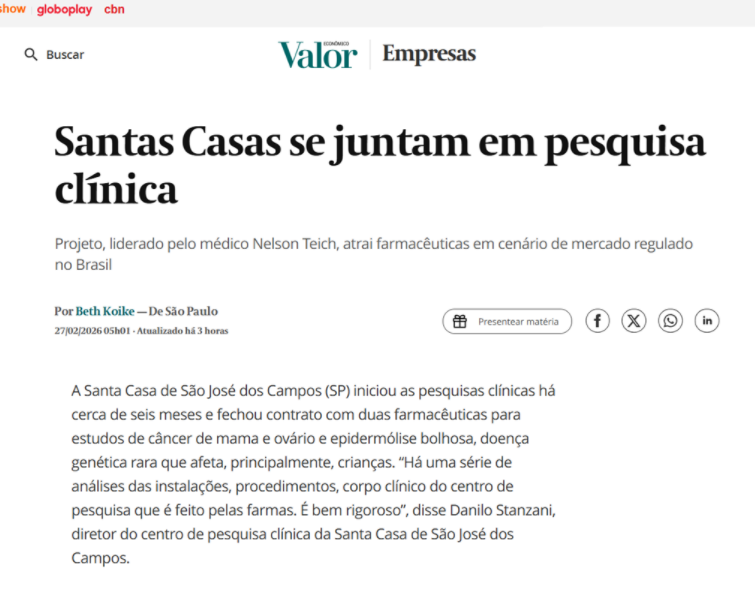 Em entrevista à Band, a Santa Casa de São José dos Campos destacou o recebimento do Nível A pelo desempenho nos transplantes renais e hepáticos, reconhecimento que reforça a excelência da instituição na área. De